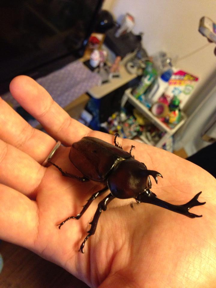 脱走シリーズその?。 以前脱走インコが飛んできて驚いた!! ということをここで書き散らしていたかもしれません。 私インコちゃんも大好きなので、数分の遭遇でも非常にうれしかったんです。 しかしですよ。 一昨日ゴミ出しに行こうと家の扉を開けたところ、今度は・・・・・・・・・・・・・・・ カブトムシくんが!!!!!! 一瞬、巨大化したG様が暑さに悶えあそばされているのかと思って身構えたのですが。 よくよく見ると角がある。 あ、これはカブトムシだ・と気が付いて旦那氏を呼んでみました。 (↑正しいつ...