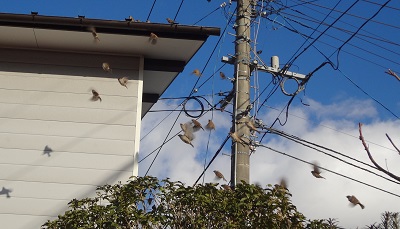 JUGEMテーマ:最近のマイブーム 私と母の最近のマイブーム! それは,母の家の庭にやってくるたくさんの雀たちを毎日眺めること。 夏も秋もたくさんやってきたのですが,新年になるころに特に増えたような気がします。 庭の木から一斉に飛び立つ雀たちです。 屋根の上から庭木へ。行ったり来たり。 よーく目をこらしてみると,キンモクセイの葉の間から姿が見えます。 チュンチュンとそれはそれは賑やか。 道行く人も思わず見上げたり。近所のおじいちゃん...