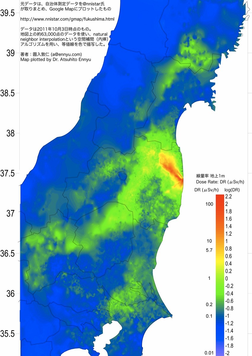 JUGEMテーマ:原発 esaa.net/tag/%91D%8B%B4%8Es 関東ホットスポット -高濃度に放射能汚染されてる地域- 「チェルノブイリ法」= 追加的被曝「年1ミリシーベルト」以上の地域が「避難の権利ゾーン(=避難権付居住地域)」として規定。 1年1ミリシーベルトで計算すると、追加被曝で平均0.114μSV/h以上が避難の権利ゾーン。 (例:0.114μSv/h+福島原発事故前の自然放射線量0.07μSv/h=0.184μSv/h以上がアウト) 【放射性物質の半減期】セシウム=30年・ストロンチウム90=29年・トリチウム=12年・プルトニウム239=24000年...