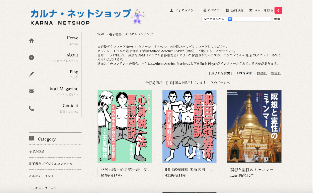 カルナ・ネットショップの買い物かご(カート)でご注文ください。 その場で決済が終了するPayPalがおすすめです。 その際、配送方法は、必ず「電子書籍」をお選びください。 決済後ダウンロード先のURLをメールしますので、24時間以内にダウンロードしてください。 ダウンロードされた電子書籍は標準のAdobe Acrobat Reader(無料)で閲覧することができます。 書籍データはPDFで、高度なDRM(デジタル著作権管理)によって保護されていますが、パソ...