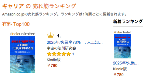 『2025年失業率73%/人工知能に「仕事」を奪われる日』 まだ順位が上がっています! 総合 226位→218位→216位→180位→156位→155位→148位 1位 ─ビジネス・経済 > キャリア 2位 ─コンピュータ・IT > コンピュータサイエンス 3位 ─科学・テクノロジー > 工学 > コンピュータサイエンス > 人工知能 ++++以下は昨日の18時の投稿です。 『2025年/失業率73% 人工知能に「仕事」を奪われる日』 Amazon 売れ筋ランキング: 総合 218位 1位(新着1位) ─ビジネス・...