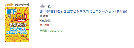 『部下のYES!!を引き出すビジネスコミュニケーション』高島徹先生 著 『部下のYES!!を引き出すビジネスコミュニケーション』ミーティング・プレゼン の 新着ランキング2位です! 高島徹先生 著 https://www.amazon.co.jp/dp/B0756TLD9Z/ 以下は過去の投稿です。 発売前にカテゴリー新着ランキングの4位にランクイン! 9月9日発売! https://www.amazon.co.jp/dp/B0756TLD9Z/ この本は、前作「相手のYes!を引き出すビジネスコミュニケーション」の続編です。前作では人間関係を広く取り扱いました...