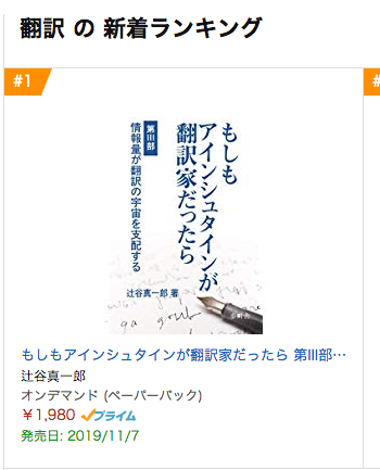 『もしもアインシュタインが翻訳家だったら〈第III部〉情報量が翻訳の宇宙を支配する』辻谷真一郎 著の紙の本が発売! 予約中に翻訳カテゴリーの新着1位になりました。 『もしもアインシュタインが翻訳家だったら〈第III部〉情報量が翻訳の宇宙を支配する』電子書籍がカテゴリー新着1位にランクイン! カテゴリー新着1位(アマゾンkindleランキング)にランクイン! 以下は過去の投稿です。 カテゴリー新着2位(アマゾンkindleランキング)にランクイン! カテゴリー新着4位...