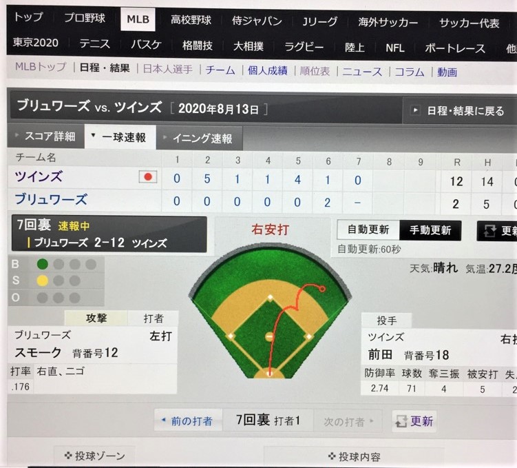 JUGEMテーマ:マエケン 7回で交代 2失点、5奪三振のナイスピッチングでした。今年は内容がいいですね。しかし それにしてもマエケンの情報がなかなか取れにくいのは何とかならないだろうか・・・・。今年はDAZNではMLB中継やらないというし、BSはエンゼルスの中継が多いしマエケン見たいけど見る術が無い。結局出場試合を調べてSportsnaviで静かに結果を見守るしかない・・・・マエケンのプレー 中継で見たいのに。   【マエケンを応援するにはこれしかないの??】       ...