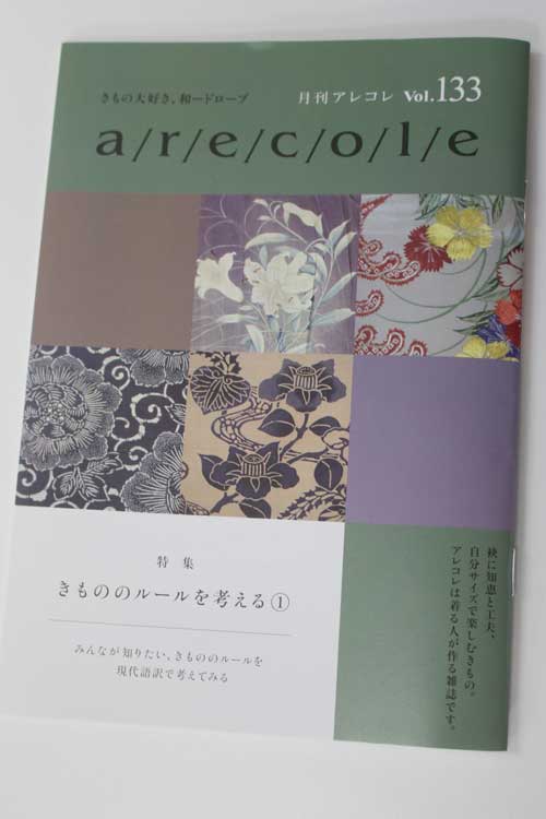 JUGEMテーマ:普段着物のお話 むらまご呉服店へようこそ。 きもの大好き、和ードローブ 月刊アレコレの新しい号が入りました。 早くも秋の感じさせるシックな色合いの表紙です。 特集は「きもののルールを考える」 書店では販売していない「月刊アレコレ」 むらまご呉服店でも扱っています。 むらまご呉服店 ポチットお願いいたします にほんブログ村 ...