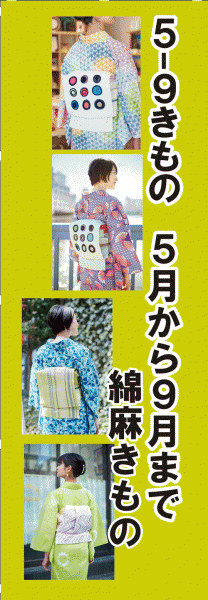 JUGEMテーマ:普段着物のお話 2015年、2016年と評判がよかった、綿麻素材の単衣きもの。 5月から9月まで着回せる、カジュアル着物『5−9きもの』 2017年の品々、只今店内に入荷しています。 店頭に立てるのぼりを作成しました。 綿麻の5−9きもの、むらまご呉服店で取扱中!! むらまご呉服店 ポチットお願いいたします にほんブログ村 にほんブログ村