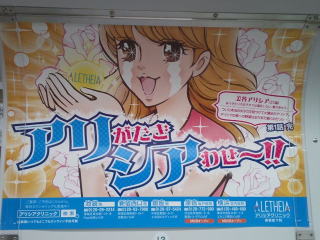 JUGEMテーマ:脱毛 マジこの交通広告もウケるんですが、 それは別としてかなりいいらしいアリシアクリニックが何と船橋に出来てました。 え?なんで船橋?とも思いましたが、 正直アリシアさんでの永久脱毛はかなりやってみたい!と思っていただけに、 ホントのこと言うとめっちゃ羨ましいです。 良いな〜船橋で永久脱毛と言えば有名クリニックなんてなかったのに、 これで船橋市民のみなさんウハウハじゃないですか〜。 ホントね、ここの全身脱毛とか評判良いし安いし、 私もめっちゃ行き...