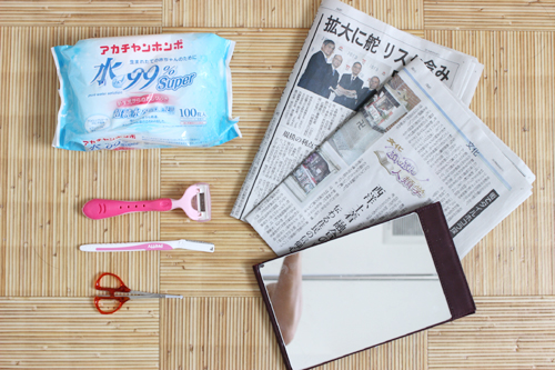 JUGEMテーマ:脱毛 前回は毛の処理の説明で終わってしまったので( ̄▽ ̄) 今日は毛の処理に必要な道具の紹介です! 剃ったあとの報告はごめんなさい! 次回に持ち越しですm(_ _)m まずは、毛の処理に用意したものをざっとご紹介します。 左上から順に下へ・・・ ウェットティッシュ(水で濡らしたタオルでもいいかもしれません) 広範囲用シェービング(よくある足や腕用のカミソリです) 顔そり用シェービング(細かな場所を剃るようのものです) ハサミ(これは小さくて絶対...