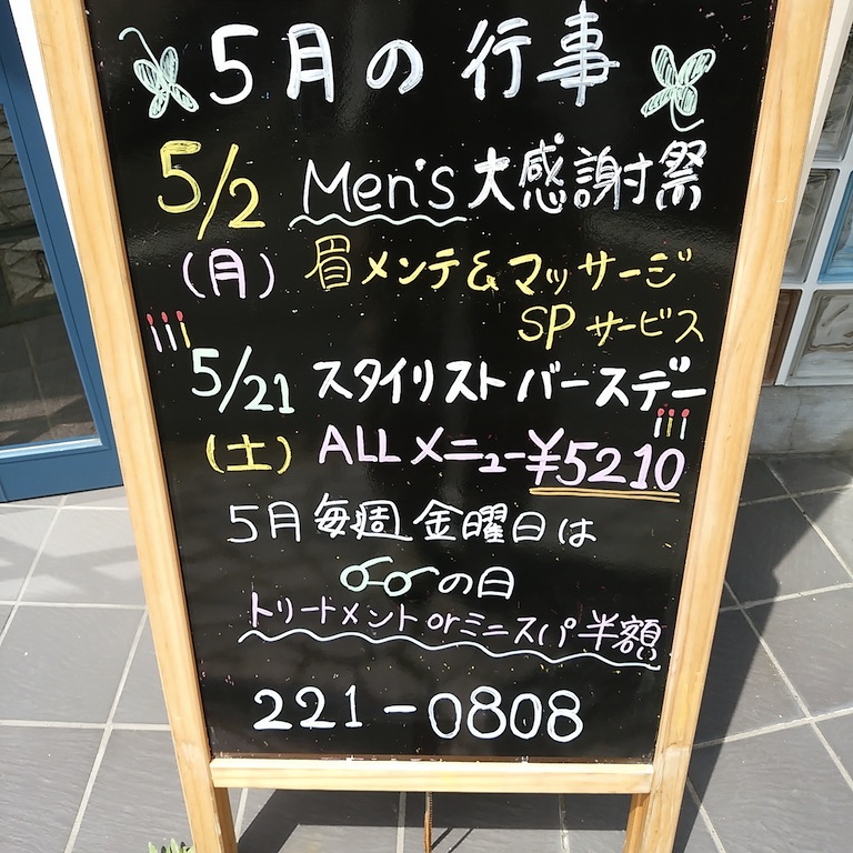 JUGEMテーマ:ヘアカット 5月のイベント一つが終わってしまいました・・・。 そして5月の最大のイベントが近づいています。 5月21日、22日は スタイリストYukiちゃんのバースデー カット、カラー、パーマ、ヘッドスパ等 が一律5210円!! (特殊カラー、特殊パーマは除く) 少しずつご予約も埋まってきております。 お早めのご予約をお待ちしております 5月のAVEC FORCE HAIRはイベントはまだまだ★ ※※※※※※※※※※※※※※※※※※※※※※※※※※※※※※※※ 5月の金曜日は めがねデー メガネでご来店のお...