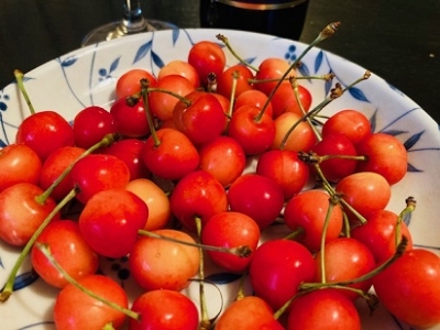 コロナ禍、なんとなく季節の変化にも疎くなっているような今日この頃。 でも、月の数字ははっきりと指し示しているわけで・・・ 一日一回のポチッ、よろしくお願い致します ⇒ 人気ブログランキングへ もうお中元の時期、仙台からサクランボが届きました。 甘酸っぱい味が口の中で、キュン! そんな季節を感じながら葡萄、サントリーのワイン「5セレクトレゼルブ」。 ほどよい渋みと柔らかな味わいがじんわりと・・・ チリ,スペイン、イタリア、アルゼンチン、オーストラリアのぶどう...