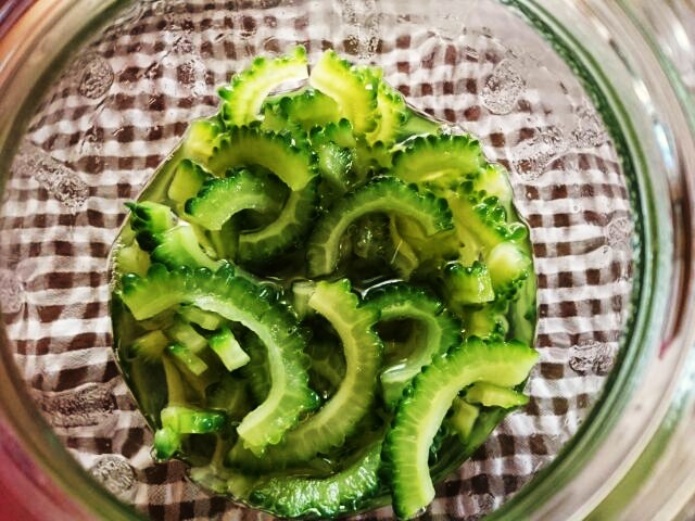JUGEMテーマ:季節の旬なもの 美味しいわぁ 今小腹が空いてきてボリボリと食べてるのん。 ゴーヤ。 コレコレ。 ゴーヤの酢漬け♪ やんばいとまらーん!ウンメィ♪ ・ 夏はゴーヤね〜〜〜 苦味が苦手な人多いけど、白いワタをとって塩もみして(きび糖ちょっとプラスしてもいいよ)10分ぐらい置いといて、さっと1〜2分茹でたらマシになるよ♪ 実は白いワタにも栄養あるからあんまり取りたくないんやけどねぇ ビタミンCがトマトの5倍♪こらスゴイでぇ で、ゴーヤのビタミンは唯一熱に強いから炒めてもOK♪ゴーヤチャンプ...