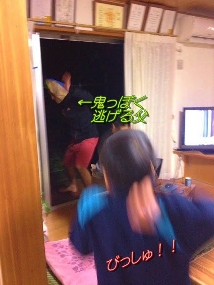 もうだいぶ日が経ってしまいましたが今年の節分はこんな感じでした。 今年は、 というか毎年こんな感じです。 旦那様が鬼役をし、外から入ってくるのを豆で阻止する息子たち(^−^)。 でも玄関、裏口、窓など出入り出来る箇所が何箇所かある為完全に旦那様の方が有利。 二人が「それーあっちだぁぁ!!(ドドドドド)」と家中走り回っても追い付かず、二人が来るまで旦那様は出入り口でぼーっと待ってたりしたのでした(^_^;)。 ちなみに写真で被っているのは、 チーちゃん(7歳)が年中の時に幼稚園で...