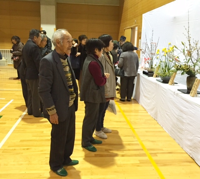 JUGEMテーマ:季節の旬なもの 気温20度Cの 比較的温かい午前 玉島長尾小学校で長尾文化祭がありました 平成27年2月22日 大変大勢のお客様です 可愛い作品は来客の人気 桑原専慶流第8世お家は この長尾の地で 華道を広められました その時代から200年 ずーと伝え続けられています 鈴木会長の立華を静かに鑑賞中