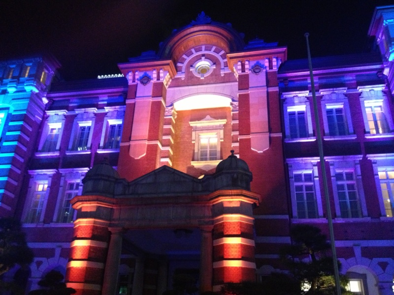ライトアップされた東京駅を通りかかりました。 先日の例の騒動の影響か、警備員が驚くほどたくさんいました 東京駅100歳おめでとう