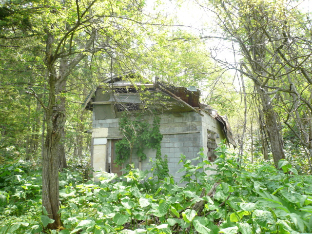 平成27年5月29日(金)、北海道・道北の廃校廃村への旅、 東和開拓の探索の目的は、「集落の記憶」で往時の暮らしを語っていただいた下司さんの生家跡を見に行くことだ。 主要道からの分岐点 東和二股は、あるはずのバス停が見当たらないため、その位置はわかりにくい。 しかし、学校跡からだと「2つ目の橋を渡ってすぐ左手の脇道を進む」とアタリをつけて、ダートの道をクルマをゆっくり走らせた。 成瀬さんに貸していただいた「東陵小学校閉校記念誌」の中の校下略図は、探索にはとてもありがたい資料だ。 やがて、青っぽい作...