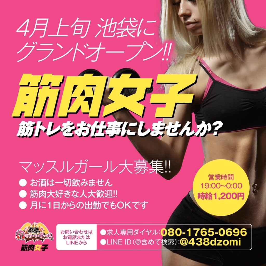 JUGEMテーマ:訪れてみたい☆おすすめスポット! 2月9日から、赤坂見付で月曜だけプレオープンしていましたマッスルガールズが、いよいよ4月上旬池袋にグランドオープン決定しました(≧▽≦) 是非筋肉に興味がある方、鍛えてある方、筋肉女子が好きな方、オープンスタッフ募集です。みんな一緒に筋肉トークで盛りあがりましょう!! これからも4月上旬、池袋グランドオープンに向けて最高のパフォーマンスができるように...