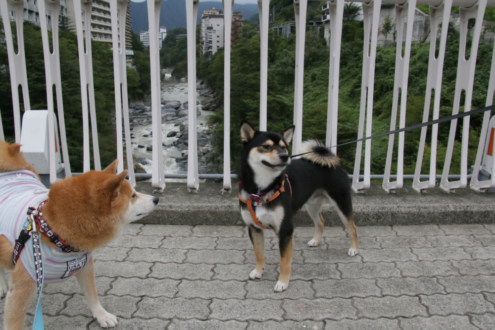 9月の22日から鬼怒川温泉に泊まりがけ旅行に行ってきました。今日は写真整理が出来ていないので、チョコット予告編です。 22日の往路は寄り道をする時間もなく、きぬ川国際ホテルに直行。 テレビ番組の旅犬、まさお君とまさはる君のバンダナと一緒に。 23日の帰路は栃木市内の観光散歩でした。 和菓子屋の店先で。 旅行の様子は後日、時間のある時に書きます。 つ づ く