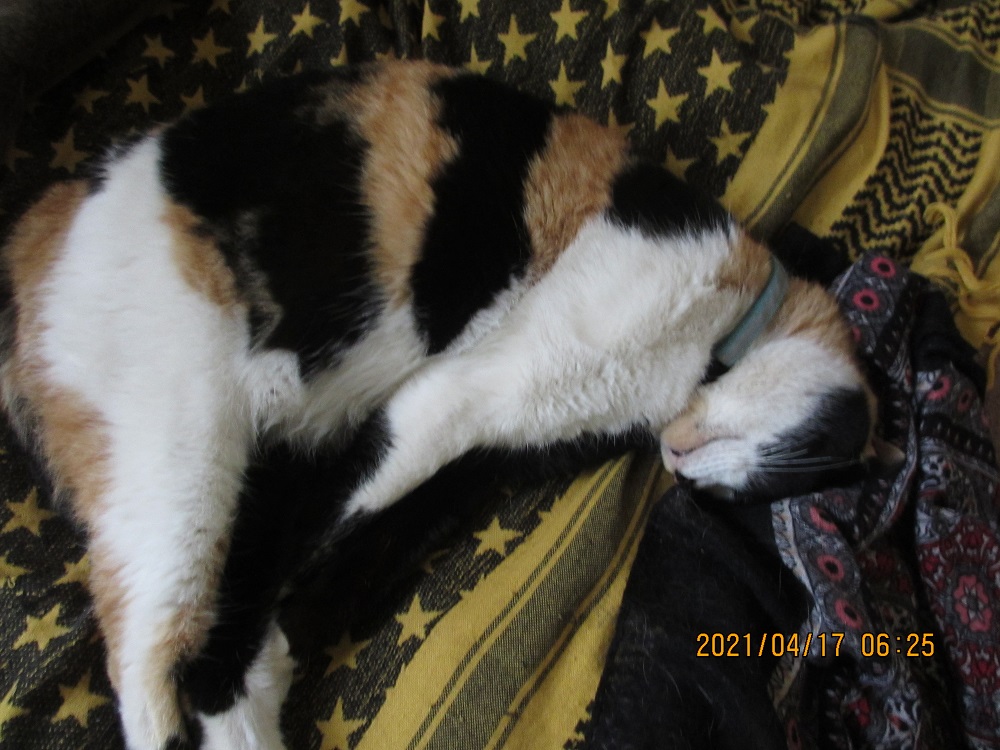 JUGEMテーマ:犬猫多頭飼い・日々あれこれ ナヌーの今日 午前9時25分外に出る 23時40分現在戻っていない。外は雨。 今朝の眠りつづけるナヌー こちらも眠るヌックにヴィック 昨年の今日4月17日の母猫と一緒のヌックとヴィック(生後1か月半) 人気ブログランキングへ
