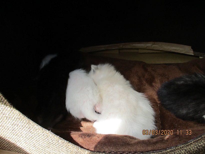 JUGEMテーマ:犬猫多頭飼い・日々あれこれ 2020年2月29日生まれ。産んだのはいつも室内に入ってきていた野良猫のフクちゃん。3匹産まれ白毛の子が4月3日に他所にもらわれていきヌックとヴィックの2匹に。母乳で育った。 生まれて3日目 8日目 10日目 左がヌック。顔の毛が白い。右がもらわれていった白毛の子。 12日目。母猫フクちゃんと。ヴィックはこの二日後位まで生まれ...