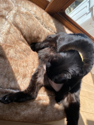 JUGEMテーマ:犬猫多頭飼い・日々あれこれ 昨日はお天気良いからか、日向ぼっこしているあんこ。 黒いので熱吸収率高そう。 結構暑がりです。 白いお腹は禿げてるところ。 気になるのか、舐めてます。 余計に禿げるよ〜。 これからはニャンコにとってもいい気候に。