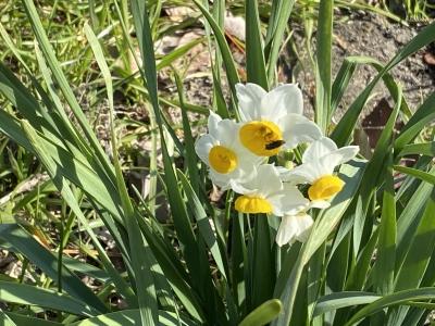 JUGEMテーマ:犬猫多頭飼い・日々あれこれ 梅を見に行って、足元見るといい香りの主発見。 誰かが植えたというより、勝手に増えてる感じのしている水仙が咲いてます。 本当にいい香りです。 確か、水仙の花言葉って「ナルシスト」じゃなかった? あまり詳しくないけどうろ覚え。