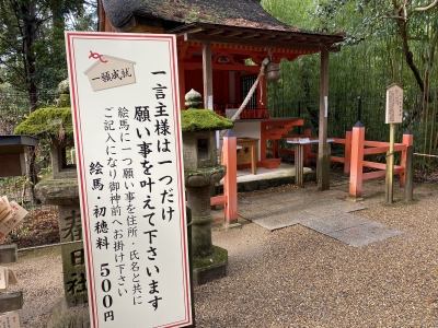 JUGEMテーマ:犬猫多頭飼い・日々あれこれ 春日大社の話に戻ります。 (このところ奈良のお話ばかりですがお付き合いくださいね) 春日大社の節分祭を見学した後、摂社にこんなところがあるのでお参りしました。 「一つだけ願いを叶えてくださいます」って。 願い事、いろいろ頭をよぎりましたが、一つだけお願いしてきました。 お願いが叶うには願うだけではいけませんね。 努力も大変大事です。 日々精進〜。 皆さんが一言だけお願いするとし...