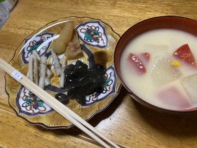JUGEMテーマ:犬猫多頭飼い・日々あれこれ あけましておめでとうございます。 今年は寒いお正月になりました。雪の多い地方では大変なことになっているようです。 我が町あたりは雪こそ降りませんが、寒いのなんの。。。 1月1日です。 朝食はお雑煮と三種の祝い肴でお祝いです。 お雑煮は白味噌仕立てで、大根とにんじんとお餅が入ってます。 甘めの白味噌。おいしいですよ〜。京都は白味噌仕立てのお雑煮が主流です。 三種の祝い肴は、黒豆と叩きごぼうと...