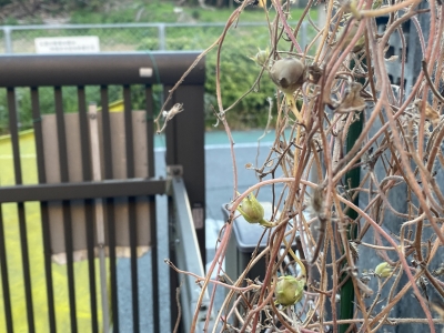 JUGEMテーマ:犬猫多頭飼い・日々あれこれ 麗しの團十郎朝顔。 タノが今年もちゃんとできました。 今は熟れるのを待ってるところです。 茶色くなると収穫。 来年また可愛い花が咲くことを願って。 写真の向こうに見えている黄色いネット、実は我が家のガレージ前がゴミ集積場になってます。 二軒のみのゴミ置き場なので毎回このネットは外して片付けます。 ネットはカラスよけ。 皆さんのところのカラス避けのネットって何色?
