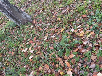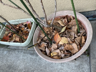 JUGEMテーマ:犬猫多頭飼い・日々あれこれ お向かいの古墳公園から桜の枯れ葉がどんどんやってくる。 毎朝掃き清めて植木鉢の根本に。 枯れ葉のお布団の出来上がり〜。 今年はまだ、痛いくらいの冷え込みはないのでお外の植物たちも凍えてないと思う。 来週くらいはかなり寒いとか。 枯れ葉のお布団で凍える寒さを乗り切ろう〜。