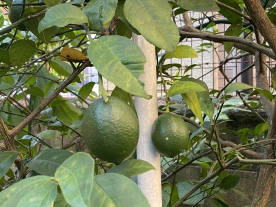 JUGEMテーマ:犬猫多頭飼い・日々あれこれ 我が家のレモンちゃん。 スクスク成長中です。この暑い中、頑張ってマス〜。 まだ色はついてきていませんが、今年も大豊作間違いなし!! 写真のはちゃんとレモンらしい形ですよね。 所々、まあるいのもあります。 楽しみだなあ〜。
