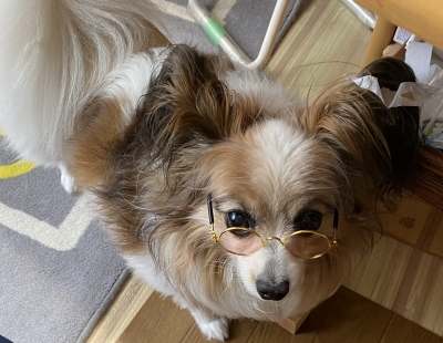 JUGEMテーマ:犬猫多頭飼い・日々あれこれ 昨日、百均で見つけたワンコニャンコ用のサングラス。 100円だからいいか〜。 早速まろにつけていただきました。 お洒落になるかと思いきや、どう見ても老眼鏡に見えます。。。。。 お洒落の道は遠いです〜。。。。 今度はあんこ大先生にお願いしてみよう。