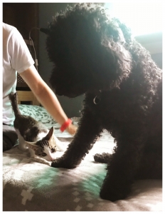 JUGEMテーマ:犬猫多頭飼い・日々あれこれ 生後3ヶ月で我が家にやってきたソリも無事に1歳を迎えました:-D 猫のソリを家族に迎える決心をした当時、何よりも気掛かりだったのは2匹の先住犬たちとの相性でしたが、幸いにも共同生活の諸々問題は何とかクリアしてきているようすです。 猫と犬が仲良く添い寝したり戯れ合う写真や動画は日々SNS上にあがり愛おしい光景ですが、散歩中に遭遇する野良への捕獲本能は大抵の犬に見られるものなので、にわかに信じられない・・・と言うのが本当のところでした。 実際、尻...