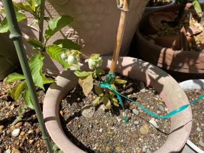 JUGEMテーマ:犬猫多頭飼い・日々あれこれ 小さな挿木にしたブルーベリーチャンドラーの枝に花がついて。 背丈が小さくても、花をつけねば〜と思ったのかな。 大粒のブルーベリーチャンドラー。 こんな小さな枝に実がついたらポキっと折れちゃわないかなあ。 折れる前にお口に入ると思うけどね。