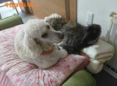 JUGEMテーマ:犬猫多頭飼い・日々あれこれ 本日、ご近所の犬友さんと犬たちが我が家にやってきた。 見知らぬ犬たちが我が家にやって来て、何ら緊張することもなく どちらかと言えばワクワクしているお犬樣たちに 我が家の猫たち、ちょっと警戒。(笑) でも、お犬様たちお行儀が良く?猫様たちを追いかけるようなこともなく ここに楽しんで過ごしていたので、猫様たちも自然と犬達と一緒にリビングで過ごすように・・・(笑) 犬猫人 我が家のリビング...