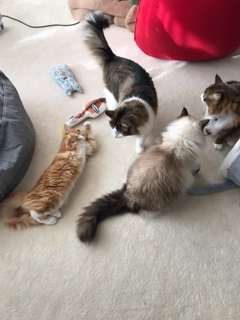 JUGEMテーマ:犬猫多頭飼い・日々あれこれ 初めてのまたたびパーティに興奮のチビちゃん。 そして、見守る育メンたち。(笑)