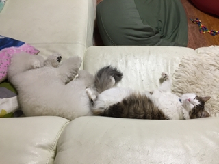 JUGEMテーマ:犬猫多頭飼い・日々あれこれ アイゼンさんの美しくも魅力的なあんよ… とのさんもムチふわあんよが気になるようです。 とのがアイゼンさんに構って!構って!ってすると、アイゼンさんはちょいちょい遊びをしてくれます。 とのが飽きても、余裕の表情でどっかり寝転ぶアイゼンさん。 アイゼンさんすごい包容力