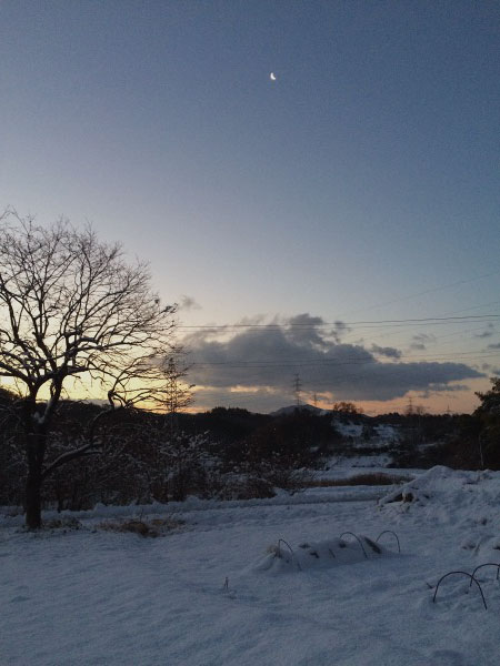 JUGEMテーマ:犬猫多頭飼い・日々あれこれ 早朝6時半過ぎのそとの様子!! 朝起きてびっくり! 昨日まで全然なかったのに、 一晩で20cmぐらい積もっていた。 空には可愛い三日月〜♪ 主人が雪かきをしてくれていたので、 スムーズに降りて行くことが出来ました! さっ!散歩〜〜!! 帰ってくるとおとぼけさんが前になって家の方へ登って行ってくれました。 (おとぼけさん、見つけられま...
