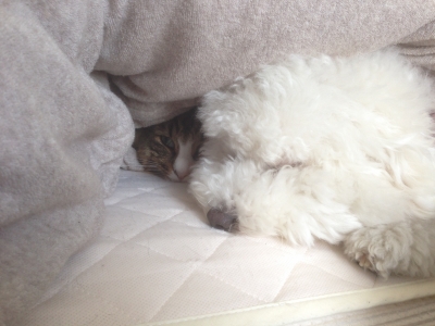 JUGEMテーマ:犬猫多頭飼い・日々あれこれ 我が家のリビングはテトリス状態です 犬を飼い始める前はフローリングのみでしたが はなさんが来てから滑らないようにカーペットを敷きました 初代カーペットは毛足が長くてはなさんの爪がひっかかり危険だったので破棄 次は毛足の短いものにしたのですが、はなさんは割と頻繁にゲーする子だったので 洗いづらくこれも破棄 夏場に綿タイプのカーペットにしたのですがダサすぎて私がギブアップ 現在は汚れてもすぐ洗えたり捨てられたりできるようにチグハグテトリス状態 白い羽毛布...