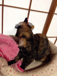 JUGEMテーマ:犬猫多頭飼い・日々あれこれ お兄ちゃんの部屋に忍び込んでゴミ箱を荒らした為、 厳しく注意されたハッチくん。 ビーズクッションの下敷き状態で反省をしておられました。(苦笑)