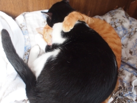 ☆今日になって調子が少し回復し、やる事やって仮眠して、 ゲームして…ダラダラと過ごしておりました。 白黒の方、病気で気が弱っているのか、本日は珍しく昼寝している 私の横にピッタリとくっついて眠っておりました。 うちの猫は、人の上に乗って寝るが、横に寄り添って寝ると いう事はほぼ無くて、ちょっと嬉しい その後は2匹でイチャイチャしておりました。 リア獣か、このやろう。 JUGEMテーマ:犬猫多頭飼い・日々あれこれ