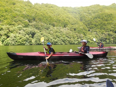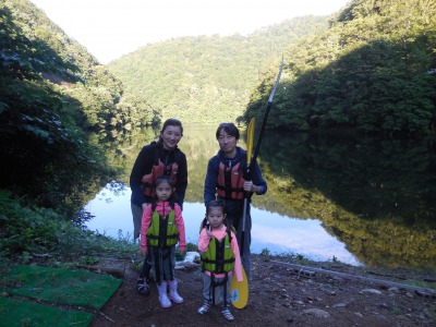 これからカヌーに乗りま〜す 眠いのかな? 5歳ちゃんと3歳ちゃん 早朝カヌーツアーだから 早起きしたもんね 眠そうにしていた3歳ちゃんも パドルで漕いで ちゃんと進んでいたよ 朝日が遠くのお山から ボワ〜ンと出てきて 明るくなってきた 周りの景色が 湖にそのまま映るのは この早朝ツアーならではです パパさんは初めてで慎重に ママさんは数回経験していて ドンドン漕ぎ進んで パーッと行っちゃう 湖上での...