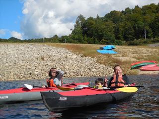 久しぶりに晴れました こんな絶好の隙間に来ていただいた3人家族 今の時期がカヌーを漕ぐのには絶好の季節なんだよ! ママさんは一人乗りで パパと年中さん 4歳でもちゃんと漕いでるよ〜 ここでいつものように上陸したけど もうそろそろ水が冷たくて ささっと乗って 奥へ奥へ 木々が少しずつ色付いてきました ピンポイントでは見頃の部分もありますよ! ダムの前でゆ〜っくり休憩 風もほとんど吹いていないから 流されていくことも...