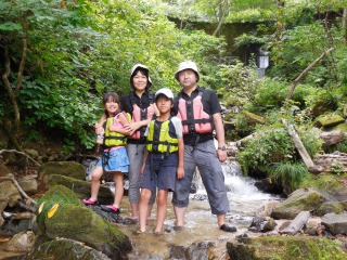 きょうのAMツアーは4人家族 そよ風が吹く 暑くなくてちょうど良い気温ですね カキ氷休憩も終わり 無事に戻れますようにと カヌー神社にお参りしたんだけど ママさんチームが 挟まったぁ〜 ママさんチームが 通れない〜 お賽銭が無いと 無効だぁ