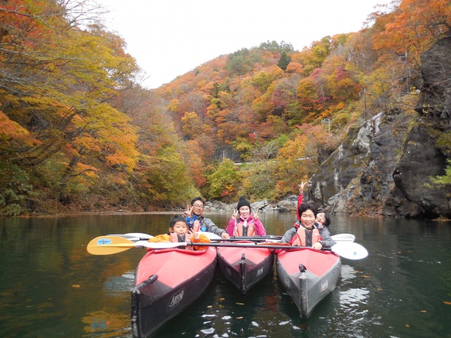 昨年も来ていただいたご家族が 今年は お爺ちゃんお婆ちゃん と 一緒に来てくださいました お婆ちゃんと息子! スパルタで声を出す息子! 半分以上お婆ちゃんに漕がせていたんじゃないの? こちらはお爺ちゃんと嫁かな? お爺ちゃんがバリバリ漕いでいました 円満なご様子です! こちらは孫ね 中二女子です 一人乗りでスイスイ進みながら 途中からはしっかりとビデオ係りでした もちろんこんな紅葉も コーヒータイムも 有りの 紅葉カヌーツアー 夕日を受けながら 3世代紅葉カヌーツアー 無事終...