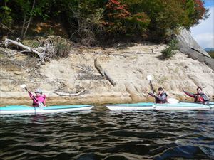 新潟からお越しの塾年ご夫妻 お母様のほうがカヌーをしてみたかったそうです ちょうど紅葉のピークを迎えました 右を向いても左を見ても 紅葉だらけ 風の無い湖では 紅葉までが湖面に綺麗に映ります ご主人はいつも奥様を気遣いながら漕いで 奥様もそれにしっかり応えながら 仲良く漕いでいました 予報と違い雲が多いお天気になってしまい 高い山々はほとんど見えませんでしたが その分 風も無く 穏やかな湖 ノンビリとユッタリと 穏やかな成熟したオトナの 紅葉カヌーツアー になりまし...