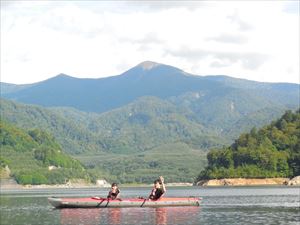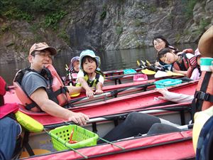 シルバーウィーク3日目 晴れて汗ばむ程の天気 奈良俣湖は キャンプ場も湖も大盛況 親子三代6名様の家族 & お父さんとお嬢さん (お母さんは、小さなお子さんがいるので今回は断念) の 8名でスタート 滝の水量は 最近のお天気で少なめです 日影でティータイム お祖父ちゃんは以前カヌーをやっていたので いいパドリングでした by 笑造