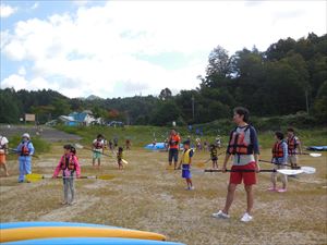 出発前の陸上練習です by 笑☆造 撮影ナガピー こうやってパドルの使い方を練習してから 出発です きっちり事前練習できたから 超スムーズに奥まで来ることができました きょうは思いの外 風も無いし 休憩も楽チンちん カントリーマアムでエネルギー補給して 山をバックに写真を撮ったら あれ!? たくさんいる! 笑☆造チームと合流して かぬ〜っこグループみ〜んなで記念撮影でした 終わりには家族ごとで 漕いだぜ〜 ちょっと ずっこけているけど これもポーズだそうです