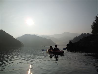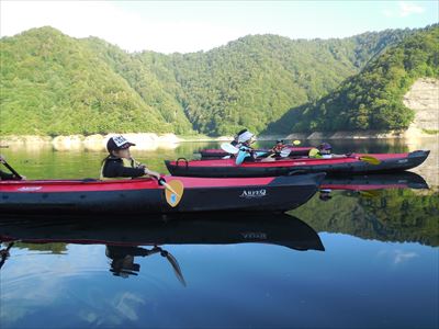 ピカピカな湖面のサンライズカヌーツアー 無風ですね〜 やっぱりカヌーは早朝が良いのです オチビちゃんたちが漕いでも進んじゃいます 頑張って漕いで笠ヶ岳や至仏山をバックに モーニングコーヒーをいただきます 子供たち&お母さん1名はカルピスウォーターね 二人の男の子 頑張って探したら 今朝も捕れましたよ こいつ元気元気! 男の子二人謎のポーズ? おじさんにはわかりません 女の子は控えめに普通に こうやって集合写真をとっている間に 逃げられた でも他にメス2匹ゲットしていました