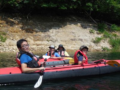きょうも朝から暑いぞ そんなときはカヌーから降りて、、、 あれ 陸地がほとんど無い 水の中を歩く! 水量が多くてちょっと大変 水がたくて同じ格好で避難中 大きなお兄ちゃんたちも避難中 男子!頑張れよ 暑さが少し和らいだかな? 6歳の船長 元気いっぱい漕ぎ始めました お姉ちゃんは みんなここに集まれ〜 休憩だよ〜 号令をかけてくれました 暑けりゃこれしかないでしょう カヌーの上のカキ氷屋さんです お姉ちゃん手伝ってくれてありがとう! カヌーを漕いで 水の中を歩いて カキ氷を...
