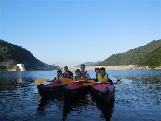 久しぶりの?早朝! すっきりとした青空 二組の親子さんです ほとんど風も無く スイスイ進むから ここまでも楽チンでした 尾瀬の山々から出てくる太陽 ご来光に向かって万歳 なんと言っても 早朝の楽しみはこれ! 湖を泳ぐ? クワガタ! 立派なミヤマクワガタをGETしました 早朝に参加のお兄ちゃんたちは そういう年齢じゃなかったから この後午前の兄弟にあげたからね! やっぱり早朝! 最後までGOODなコンディションで 漕ぐことができました